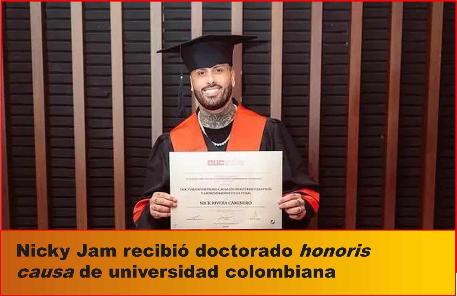 La Universidad de la Costa (CUC), en Barranquilla, le entregó al cantante y reguetonero boricua Nicky Jam el doctorado honoris causa en Industrias Creativas y Emprendimiento Cultural.