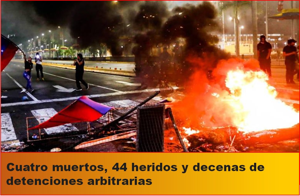 Las protestas de los ciudadanos venezolanos contra el aparente amaño de elecciones en Venezuela dejan –en el balance del primer día de manifestaciones– al menos cuatro muertos, 44 heridos y decenas de detenidos de manera arbitraria.