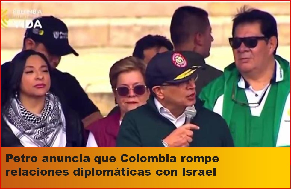 El jefe de Estado, Gustavo Petro, anunció desde la Plaza de Bolívar en medio de las marchas del 1 de mayo que desde este jueves se rompen todas las relaciones diplomáticas con Israel. El mandatario aprovechó su alocución para enviar su apoyo a Palestina.