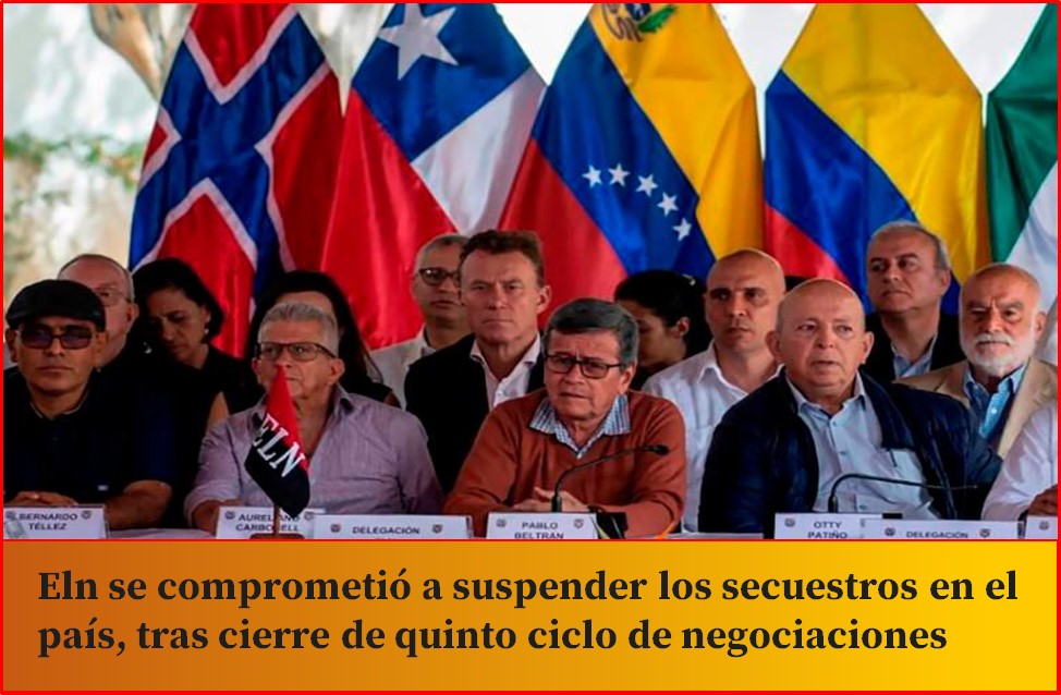 Durante la clausura del quinto ciclo de diálogos de paz entre el Gobierno nacional y Eln, este domingo 17 de diciembre, se conoció el compromiso de la organización armada de cesar los secuestros en el país, como uno de los seis acuerdos a los que llegaron ambas delegaciones.