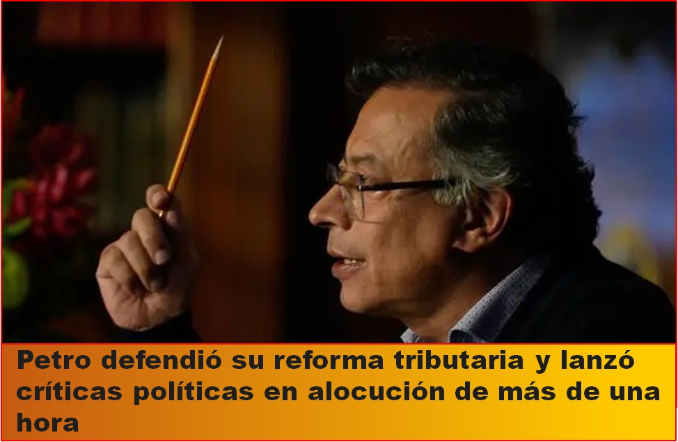 El presidente Gustavo Petro, en medio de su alocución, explicó que la reforma tributaria busca que “los que se llevan la plata a los paraísos fiscales” contribuyan, mientras que los trabajadores no se verán afectados. La medida incluye impuestos a la renta de la banca y a las generadoras eléctricas, cuya recaudación se usará para “elevar sustancialmente el gasto en educación y salud de la gente más pobre de Colombia”, enfatizó, calificando esto como un paso hacia la igualdad social.